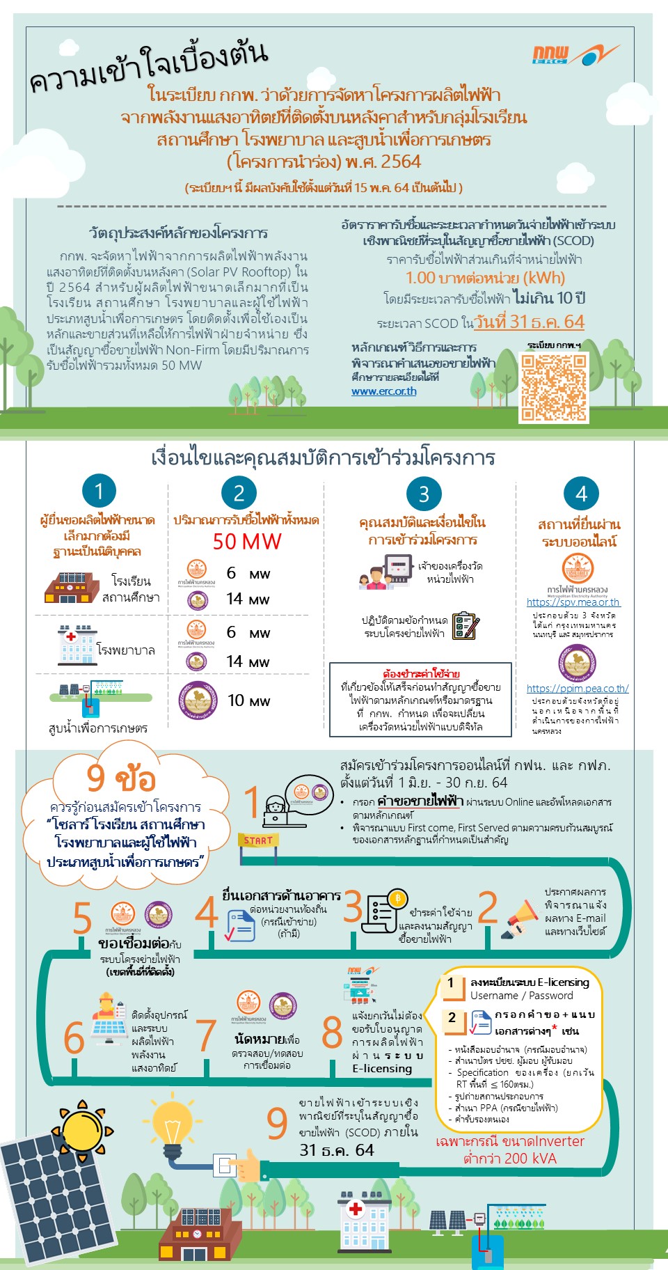 โครงการผลิตไฟฟ้าจากพลังงานแสงอาทิตย์ที่ติดตั้งบนหลังคา สำหรับกลุ่มโรงเรียน สถานศึกษา โรงพยาบาล และสูบน้ำเพื่อการเกษตร (โครงการนำร่อง) พ.ศ. 2564